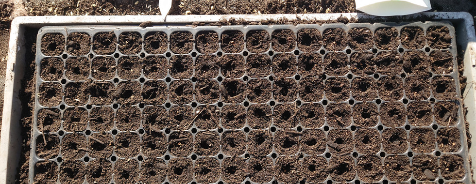 アブラナ科、キク科、ハーブ系の種まきの作業を行いましたが、細かい種の播種が難しい~!播種後は、トレイを踏み込み温床の上に置きました。