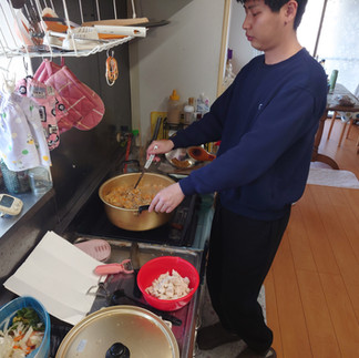 栃木の郷土料理である「しもつかれ」づくりに初挑戦しました。鬼おろしを使ったダイコンのすりおろしに腕力が必要でした。