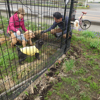 鳥虫対策として、ソルゴーの種まきも一緒に行いました。定植中に、カタツムリが葉っぱについる事に気付きました。^^